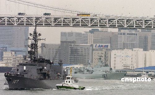 11月28日,中國海軍“深圳”號(hào)(舷號(hào)167)導(dǎo)彈驅(qū)逐艦在日本海上自衛(wèi)隊(duì)“雷”號(hào)護(hù)衛(wèi)艦的引導(dǎo)下如期抵達(dá)東京晴海碼頭,開始對日為期四天的友好訪問。這是中國海軍軍艦第一次訪問日本。中新社發(fā) 朱沿華 攝
