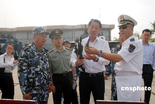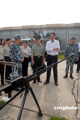 10月15日上午,新加坡國防部長張志賢在廣東省湛江市觀看操作中國海軍陸戰隊輕武器。當天,張志賢在海軍南海艦隊副參謀長幺志樓少將的陪同下,來到中國海軍陸戰隊某旅營區參觀訪問,了解了部隊基本建設情況,并參觀了部隊各式武器。張志賢表示,通過訪問加深了對中國海軍陸戰隊的了解,期待新加坡軍隊同中國軍隊進一步增進交流和合作。中新社發 李滿青 攝