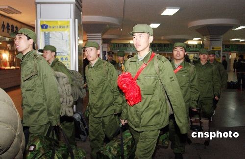 12月11日,來自江蘇、河北兩省的首批500余名新戰士抵達濟南軍區某部,開始軍旅生活。這些新戰士將集中進行3個月的軍事強化訓練,在完成社會青年向合格軍人的轉變后,充實到基層執勤第一線,擔負起維護濟南社會穩定、保衛人民生命財產安全的神圣職責。中新社發 梁志杰 攝