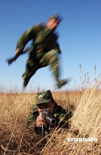 2008年12月25日,濟南軍區(qū)某部正在組織官兵進行戰(zhàn)術訓練。連日來,該部把官兵拉到野外生疏地域,著力開展嚴寒條件下的冬季野營訓練,全面鍛煉部隊在嚴寒條件下的整體作戰(zhàn)能力。中新社發(fā) 梁志杰 攝