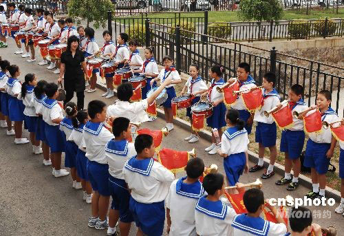 9月10日早上,在遼寧省大連市甘井子區(qū)金二小學學校門前,鼓樂喧天,學生們將鮮花獻給每位老師,表達對老師的節(jié)日祝福。當日是我國第24個教師節(jié),各地院校師生開展多種形式的活動,慶賀教師節(jié)。中新社發(fā) 劉德斌 攝