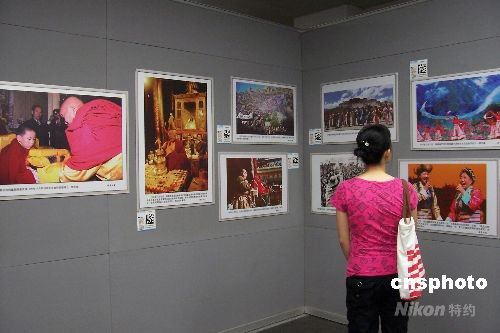 2008年10月7日,西藏今昔大型圖片展在上海圖書館免費展出。近200幅圖片,生動展現了西藏的昨天和今天,再現了西藏和平解放、民主改革、農奴翻身當家作主等諸多重大歷史事件和歷史進程,特別是改革開放以來,西藏在經濟、文化、社會、人民生活等方面發生的翻天覆地的大變化、大進步。 中新社發 周東潮 攝