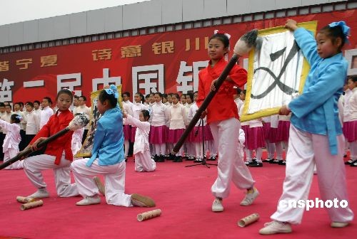 2008年11月12日上午,“回歸詩教傳統(tǒng)、重溫訓(xùn)蒙養(yǎng)正——第二屆中國銀川音樂詩歌節(jié)”在寧夏首府銀川開幕。 本屆詩歌節(jié)以“和諧寧夏、詩意銀川”為主題,以“喚醒詩教、訓(xùn)蒙養(yǎng)正”為主要內(nèi)容;顒(dòng)主辦方希望以誦讀表演的形式,通過誦讀中華經(jīng)典詩文,傳播民族優(yōu)秀文化,展示中國傳統(tǒng)詩教文化的風(fēng)采和詩歌的魅力。中新社發(fā) 蘆河 攝