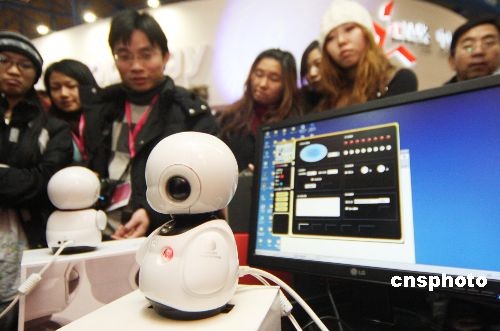 12月20日,一款能當(dāng)寵物玩的“交互陪伴型機(jī)器人”亮相北京國際文博會,讓眾多觀眾愛不釋手。這種機(jī)器人小巧玲瓏,能夠自由完成規(guī)定動作,并且擁有表情跟隨心情的表達(dá)方式,可以通過網(wǎng)絡(luò)下載的情景來演繹動作。 中新社發(fā) 吳芒子 攝