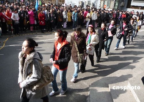 2009年2月7日,北京電影學院2009年招生初試工作已進入了第三天,一批批來自全國各地的考生繼續為圓明星夢而拼搏努力。今年最顯著的特點是本色考生越來越多,濃妝艷抹、奇裝異服的考生少了。據悉,表演專業一直被認為是北影“最難考的專業”,雖然今年的招生人數由往年的30人增加到75人,但面對4234名報考者,淘汰率仍高達98.2%。一位考官告訴記者,雖然報名者很多,但有充分準備、專業水平較高的考生不超過千人,還是有很多考生很盲目。中新社發 玉龍 攝