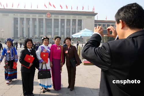 圖:中共十七大閉幕 代表在人民大會堂前留影