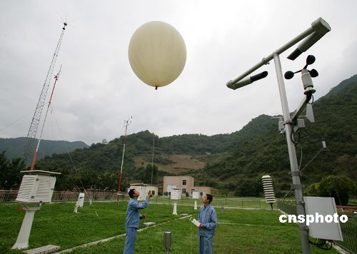 10月22日,西昌衛星發射中心氣象室工作人員正在施放高空探測氣球,搜集高空風速、風向和云層的變化情況。該中心航天發射場氣象變化非常復雜,每年有一百二十余天的雷電陰雨天氣。中國國防科工委當晚在北京宣布,“嫦娥一號”衛星將于24日至26日擇機在西昌衛星發射中心發射,首選發射窗口為24日18時左右。中新社發 秦憲安 攝