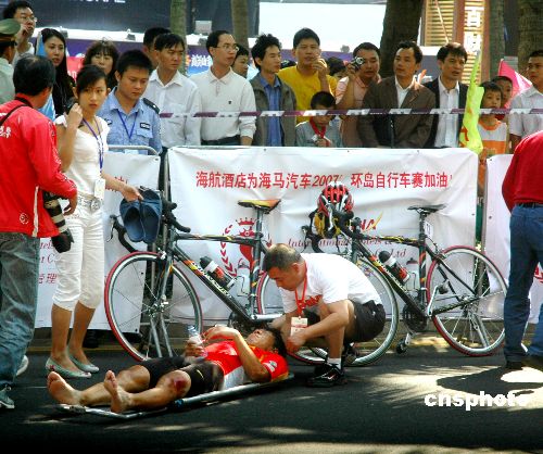 圖:環(huán)海南公路自行車賽 記者與三賽手相撞(2)