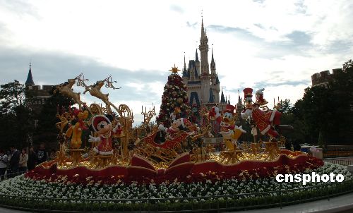 圖為東京迪斯尼樂園內高16米的巨型圣誕樹。