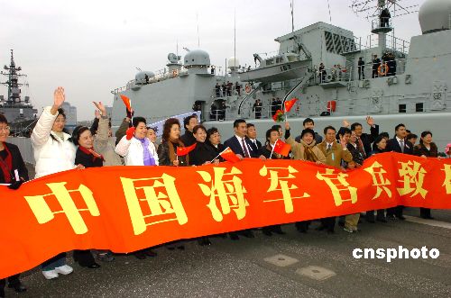 ·圖:中國海軍“深圳”號抵日訪問受到熱烈歡迎