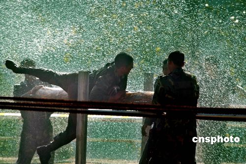 圖為中國士兵訓練旋轉(zhuǎn)木馬。
