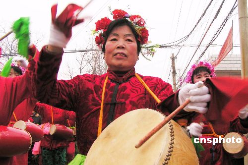 圖:河南農(nóng)民敲起大鼓迎新年