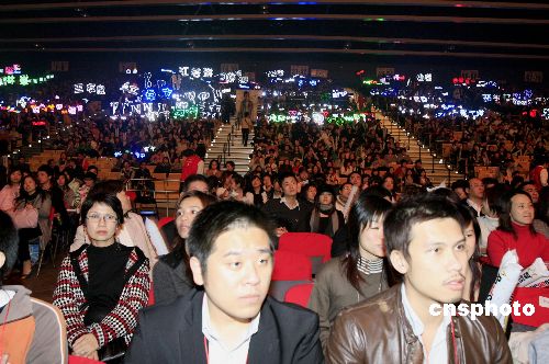 各歌星“粉絲”們現場用熒光棒聲援自己崇拜的對象,互斗聲勢,形成一景。