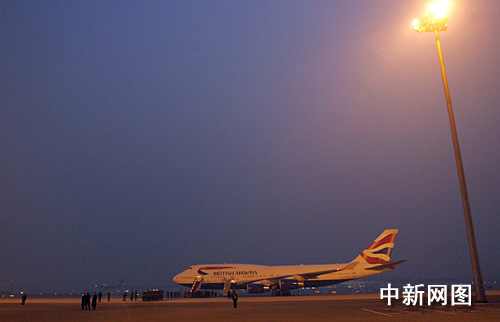 英國首相布朗18日清晨乘專機抵達北京。(中新社記者 盛佳鵬/攝影)
