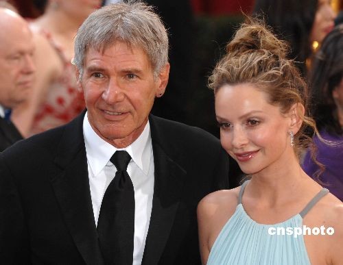 當地時間2月24日晚,第八十屆奧斯卡頒獎典禮在好萊塢柯達劇場舉行。好萊塢明星哈里森·福特攜女友出席頒獎典禮。中新社發 張煒 攝
