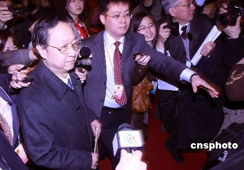 3月5日,十一屆全國(guó)人大一次會(huì)議在北京開(kāi)幕,國(guó)家安全生產(chǎn)監(jiān)督管理總局局長(zhǎng)李毅中一露面即被記者“關(guān)照”合圍,追訪安全生產(chǎn)老大難問(wèn)題。中新社發(fā) 張宇 攝