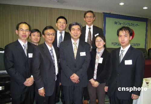 日本外務(wù)省新任新聞發(fā)言人兒玉和夫3月14日晚在東京與中國新華社、光明日?qǐng)?bào)等駐日記者交流時(shí)表示,日本外務(wù)省正在全力準(zhǔn)備迎接胡錦濤主席訪日。胡主席成功訪日,對(duì)于進(jìn)一步加強(qiáng)日中關(guān)系有著非常重要的意義。圖為兒玉和夫(前排中)和中國記者們合影。中新社發(fā) 段躍中 攝