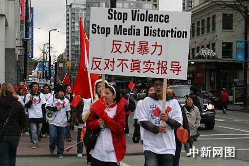 當(dāng)?shù)貢r(shí)間29日下午,加拿大溫哥華部分中國(guó)留學(xué)生和華人代表組織“反暴力,反媒體對(duì)西藏事件失實(shí)報(bào)道”集會(huì)活動(dòng)。中新社記者呂振亞攝