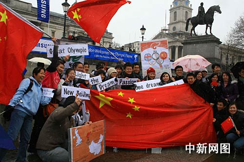 圖:倫敦特拉法加廣場上歡迎火炬的中國留學生(2)