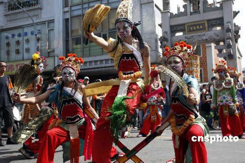 圖:臺(tái)南媽祖出游祭拜場(chǎng)面熱鬧