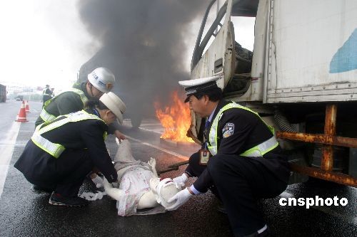 圖:山東交警舉行“迎奧運(yùn)保暢通”演練(4)