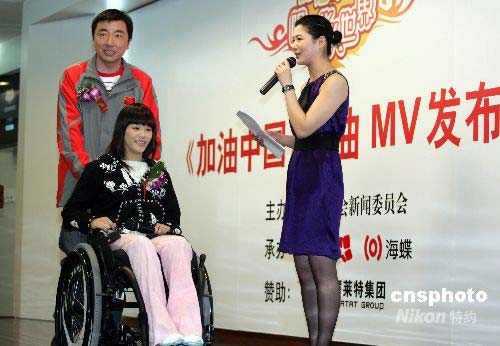 4月11日,奧運(yùn)冠軍楊凌推著桑蘭登臺(tái)暢談錄制《加油中國(guó)》歌曲的心得。當(dāng)日,體育門(mén)戶網(wǎng)站華奧星空與華人唱片公司海蝶在北京發(fā)布“加油中國(guó)—唱響華人世界”系列活動(dòng)主題歌《加油中國(guó)》。該歌曲由高敏、吉新鵬、雷聲、桑蘭、王海濱、王麗萍、刑傲偉、楊凌等八位體育明星共同錄制演唱。作者: 楊可佳