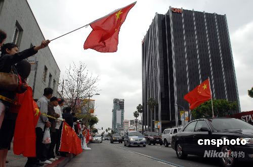 當地時間4月19日,洛杉磯爆發十幾年來最大規模的華人華僑抗議示威活動。數千名華人華僑和留學生在CNN洛杉磯分部門前參加和平示威,要求CNN向公開鄭重道歉,并開除卡弗蒂。一些學生和僑民乘坐汽車在日落大道上來回穿梭,他們揮舞著五星紅旗和抗議標語牌與兩側人行道的抗議人群相互呼應。 中新社發 張煒 攝