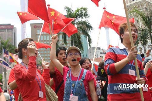 圖:中國留學生在吉隆坡為奧運圣火助威(2)
