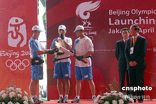 4月22日下午2時15分,雅加達特區(qū)省長法烏茲手持“祥云”火炬跑出第一棒,北京奧運圣火在雅加達的傳遞正式啟動。北京奧運圣火雅加達站傳遞從蘇加諾體育中心東門開始,八十名火炬手圍繞其中的蘇加諾體育場進行七公里左右的傳遞。八十位火炬手中,有印尼現(xiàn)役和退役優(yōu)秀運動員、贊助商代表、政府官員、社會活動家等。