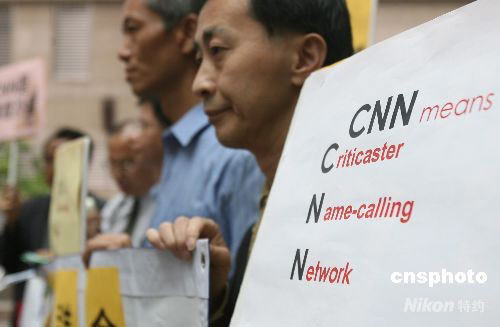 香港教育團(tuán)體集會(huì)抗議CNN電視主播辱華言論。中新社發(fā) 武仲林 攝