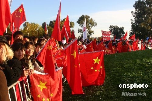 堪培拉華人冒秋寒歡迎北京奧運圣火(2)