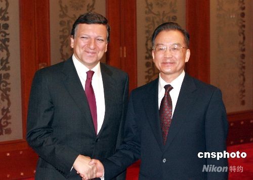 4月25日,中國國務院總理溫家寶在北京人民大會堂與來訪的歐盟委員會主席巴羅佐舉行會談。中新社發 廖文靜 攝
