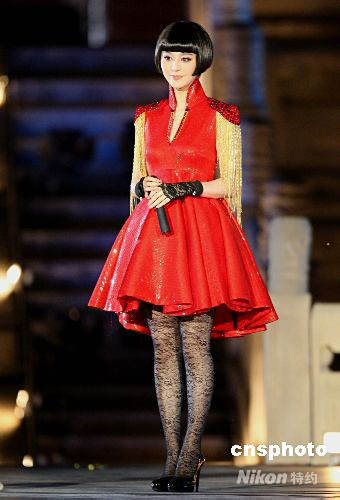 范冰冰現場獻歌。中新社發 趙振清 攝
