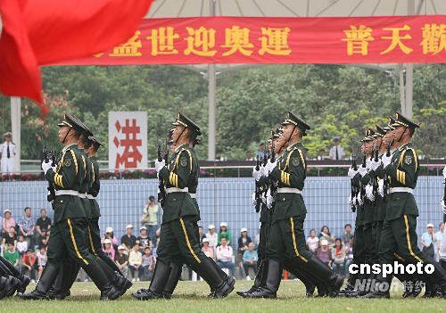 圖為市民在昂船洲軍營觀看槍械團(tuán)體操表演。中新社發(fā) 武仲林 攝
