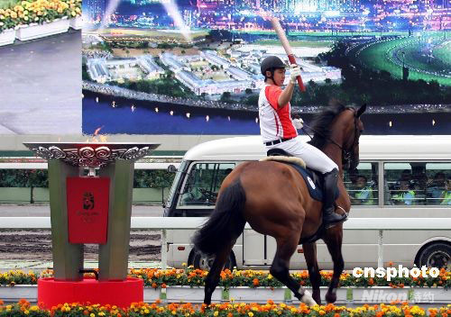 五月二日,香港沙田馬場舉行“萬眾歡騰迎圣火”大型社區慶祝活動,來自全港十八區的一萬五千多名市民歡聚一堂,共慶北京二零零八奧運圣火在香港傳遞。中新社發 武仲林 攝