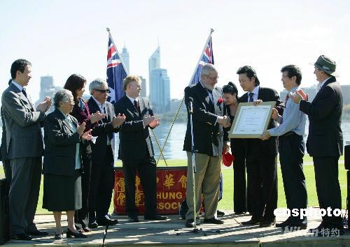 13個西澳華人社團的代表向西澳參加北京奧運的運動員捐贈了五萬澳幣(近四十萬人民幣),表達西澳洲華人對澳大利亞體育事業的支持。 中新社發 高周丹 攝