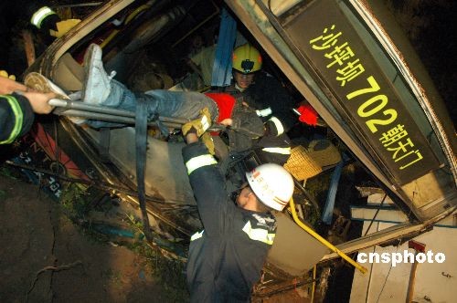 圖為消防人員將被困車內的傷員救出。中新社發 郭晉嘉 攝