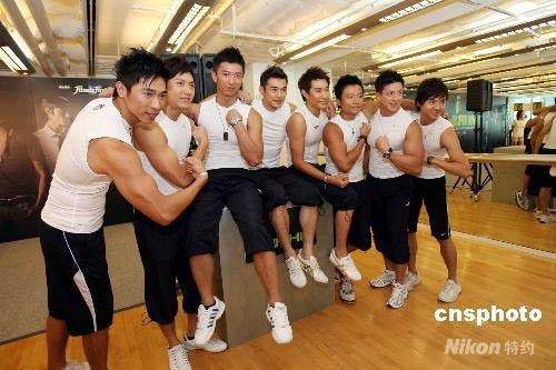歷屆的“香港先生”高鈞賢、黃長發(fā)、袁偉豪等以陽光活力造型出場宣傳。中新社發(fā) 洪少葵 攝