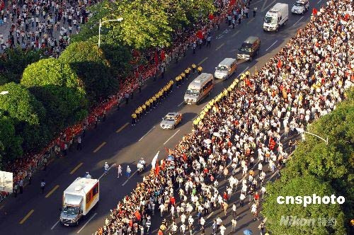 5月8日,奧運圣火在廣東深圳傳遞,深圳百萬市民在深南大道兩旁追逐奧運火炬?zhèn)鬟f。