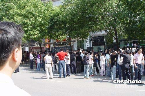 2008年5月12日下午,河南省會鄭州受到四川地震波及,該市農業路上站滿了疏散的市民。中新社發 李志全 攝