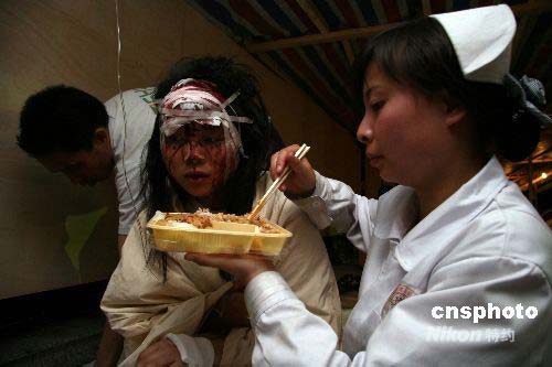 圖:醫(yī)務(wù)工作者救助來自都江堰地震傷員(4)