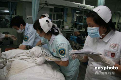 圖:醫務工作者救助來自都江堰地震傷員(5)
