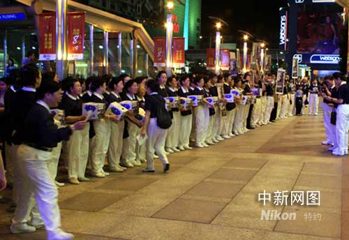 十月十七日晚,慈濟臺北分會在臺北市忠孝東路崇光百貨店門口發起為四川震災,緬甸風災募款行動。有二百多名義工參加。 作 者:陳立宇