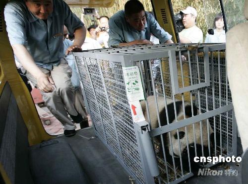 八只來自四川災區(qū)的奧運大熊貓平安抵京 (2)