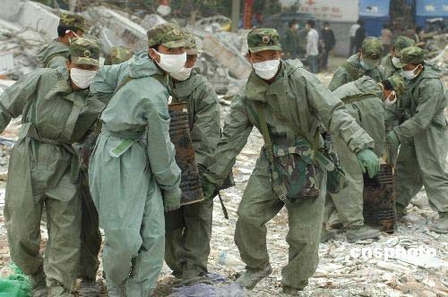防化兵在搬運(yùn)消毒干粉。中新社發(fā) 成和平 攝