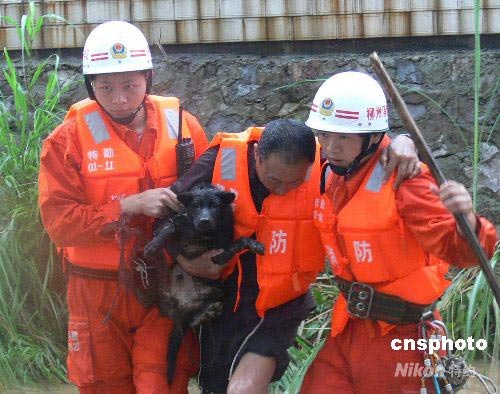 5月30日,廣西柳州市普降暴雨導致山洪暴發,該市陽和工業區數十民眾被圍困。圖為柳州消防官兵轉移被困老人。中新社發 田自峰 攝