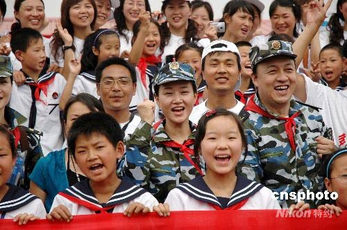 宋祖英呂繼宏等明星和四川綿竹海軍小學學生共度六一