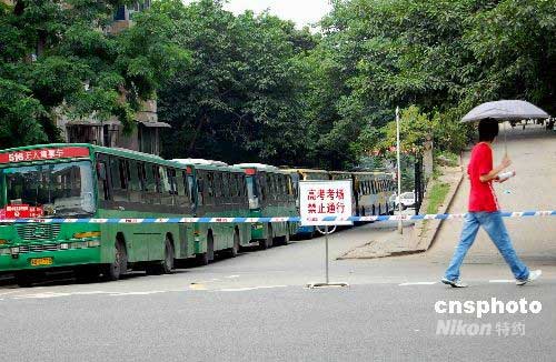 重慶市北碚區(qū)西師附屬中學(xué)外拉起了“禁止車輛通行”的警戒線,全力保證高考期間考場周圍的安靜狀態(tài),讓考生考出最佳成績。中新社發(fā) 許康平 攝