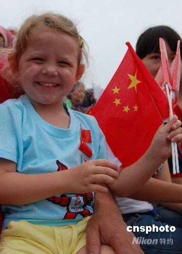 圖:外國小朋友在廣西百色熱情迎接奧運圣火