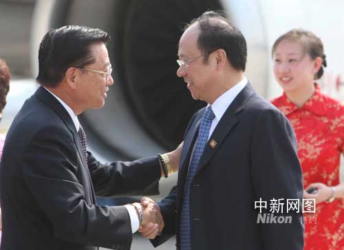 十一日下午三時十五分許,臺灣海峽交流基金會董事長江丙坤率海基會代表團抵達北京首都機場,海協會常務副會長鄭立中(右)到機場迎接江丙坤。作者:趙振清